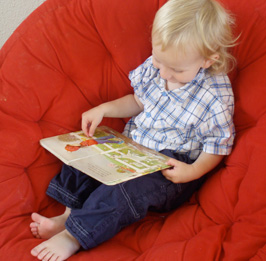 If you have read to your child since he was a baby you will notice that he is starting to show a real interest in books for himself. He will sit and look at books and pretend to read them, reciting the story to himself and commenting on the pictures.