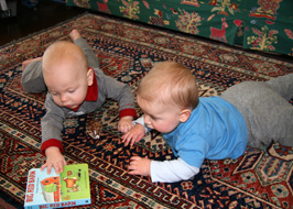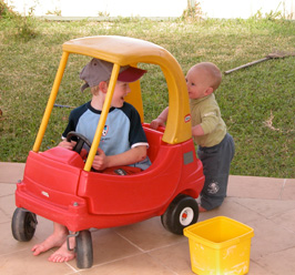 If possible, give your children the opportunity to develop their social skills by letting them sort things out between themselves. Make a note of problem areas and organise the environment to minimise conflict; for example, have a high shelf for the older child's toys and a lower shelf for the younger child. If some toys are for both siblings, you could have a rule that when someone is using a toy, that toy is not available until it has been returned to the shelf. Use rugs or mats to mark personal play space. Activity on a mat is not to be touched until the user has returned the toy or activity to the shelf.