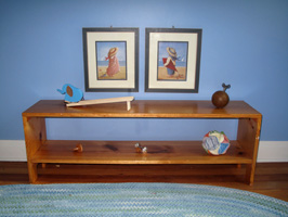 - Show how to put toys away. Keep just a few toys on the shelves and rotate from a closet or cupboard to keep the play area always fresh and tidy. If you model putting things away, your child will eventually do the same. Your two-year-old loves order and likes for her world to have order. She absorbs where things go and by age three will be capable of putting things back most of the time. You can help her by cheerfully saying, 'I wonder where the blocks go when we are finished?' An orderly environment supports your toddler in structuring his own mind.