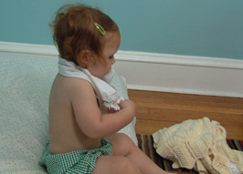 - When she has tried a little and is starting to get frustrated give her just enough help to get her over the challenge she is having but don’t finish dressing her. Let her carry on with the next step by herself. Little by little she will learn to do it all for herself.