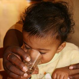 - As soon as your child can hold something in his two hands introduce a small glass for drinking. When we offer him a glass instead of a bottle or ‘sippy’ cup he feels he is being like a ‘grown up’. Putting this trust in your child makes him feel good about himself.