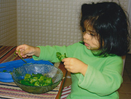 - Your child can contribute to preparing meals by doing simple tasks like scrubbing a potato, cleaning a carrot or cutting a banana using child-sized utensils.