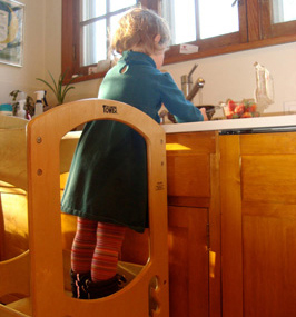 - Provide a sturdy but light stool that your child can put in places that will give him access to the work surfaces.