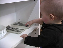 - Place these in a cupboard that is low enough for your child to access for himself with doors that he can easily open.