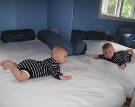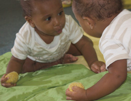 - Talk to him about the movements he is making and describe the effort he is putting in. Encourage him to look in the mirror so that he starts to notice someone moving and gradually he will start to realise that the little person moving is him!