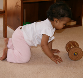 - Place the objects just out of his reach so he is encouraged to push himself forward in an action that leads to crawling.